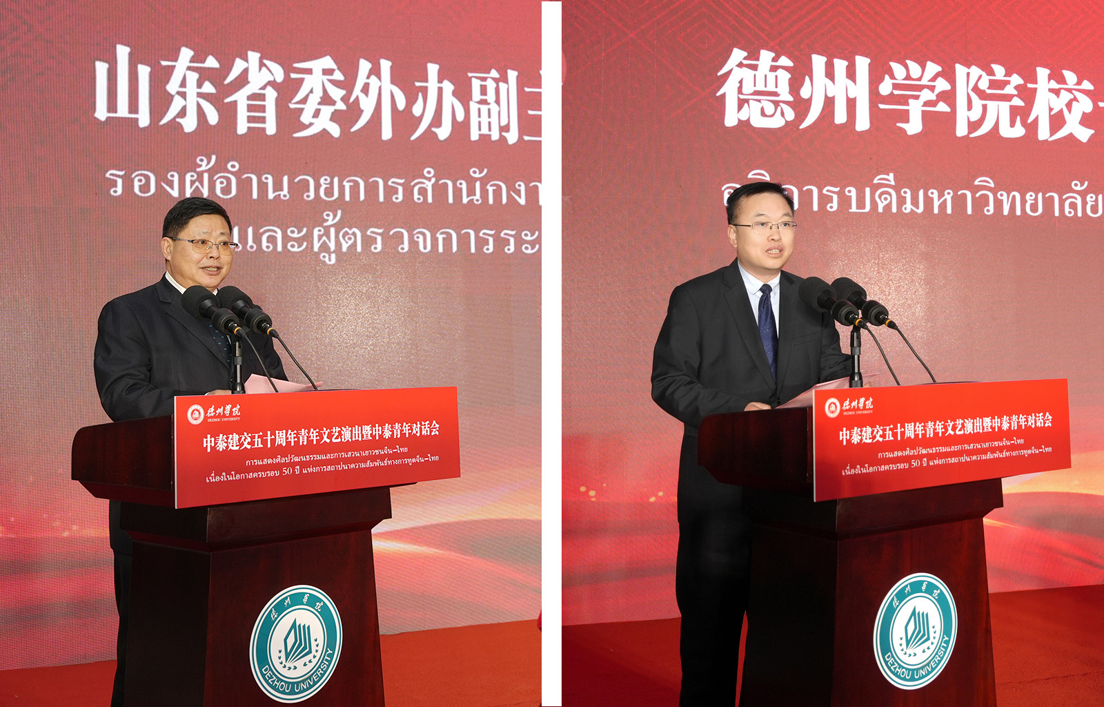 Opening: A fraternal bond between China and Thailand, lasting a thousand autumns; we pluck blossoms to gift one another, making our homelands still more beautiful. Guided by the spirit of the 20th CPC Central Committee’s 4th Plenary Session and the Belt and Road Initiative, Dezhou Universitystageda series of celebratory events to mark the 50th anniversary of China-Thailand diplomatic relations, deepening bilateral exchanges and encouraging young Chinese and Thais to build mutual understanding through cultural resonance and sincere dialogue, to carry forward the torch of friendship and become both heirs and innovators of China-Thailand cooperation.