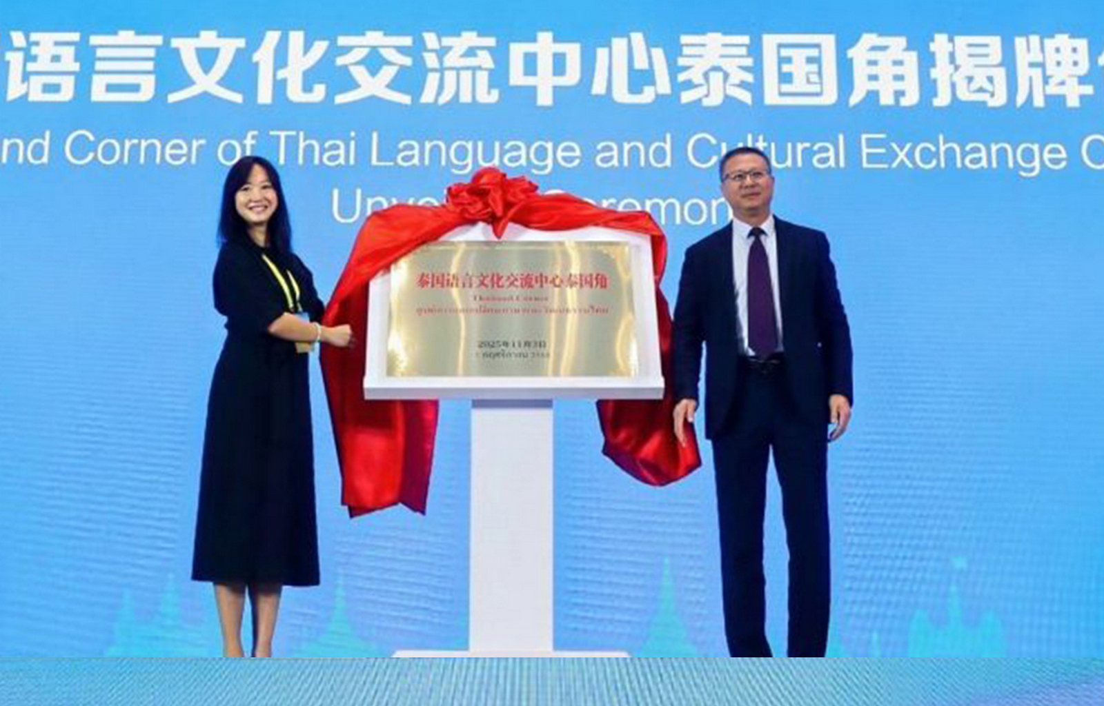 During the 2025 Yellow River–Mekong Exchange Week & ASEAN SMEs-Shandong Cooperation Forum, provincial and municipal leaders held a courtesy meeting with ASEAN guests. University Party Secretary Wu Jun joined the meeting and, at the opening ceremony, unveiled the “Thailand Corner of Thai Language and Cultural Exchange Centre” together with Deputy Consul-General Natsupang Poshyananda. As the red silk fell, applause rolled through the hall, signalling a new phase in China-Thailand educational and cultural cooperation.